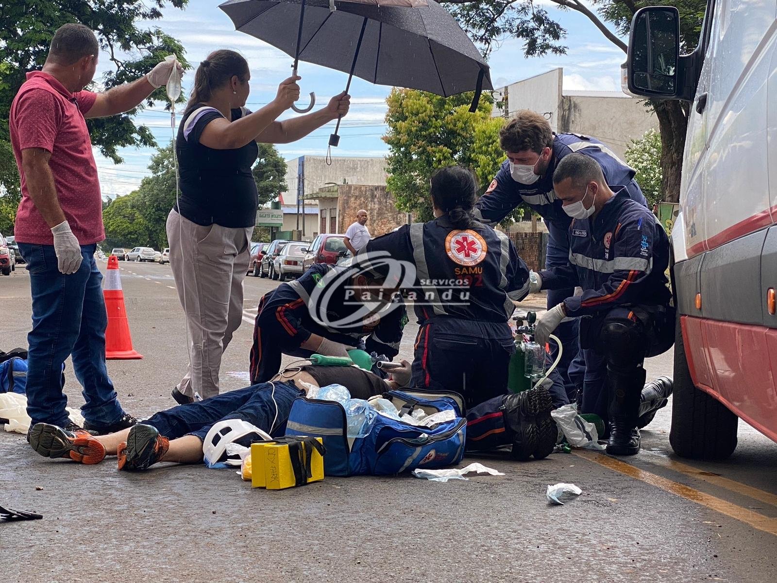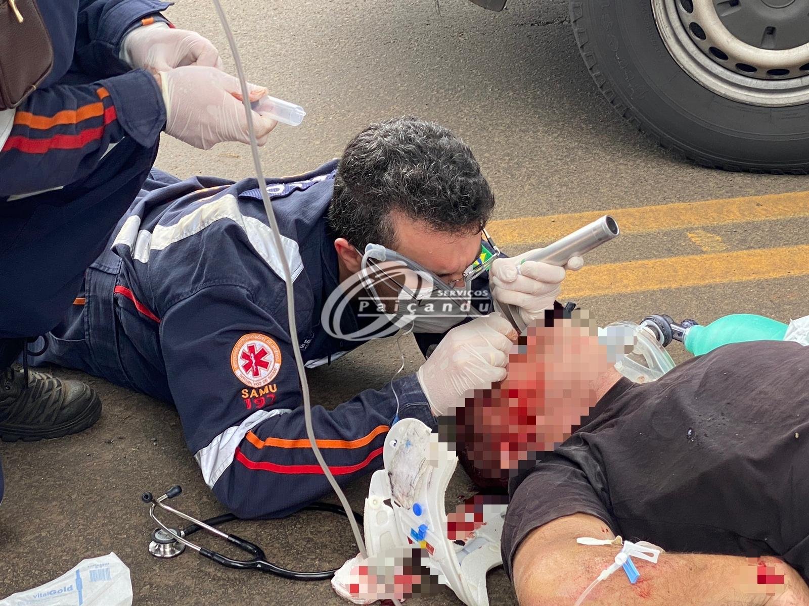 José Aparecido Correia, de 48 anos, foi socorrido em estado grave, após sofrer traumatismo craniano em um acidente de trânsito. Ele ficou inconsciente e precisou ser intubado pela equipe médica do Samu. O acidente aconteceu no início da tarde desta segunda-feira (16), na Avenida Ivai, área central de Paiçandu.