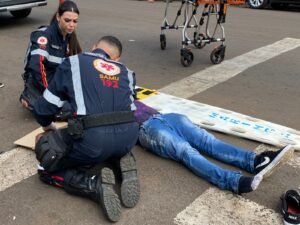 Início » Motociclista é socorrido pelo SAMU após acidente em cruzamento no centro de Paiçandu