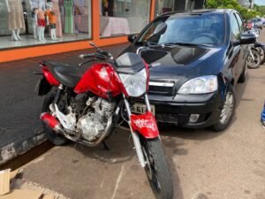 Motociclista é socorrido pelo SAMU após acidente em cruzamento no centro de Paiçandu