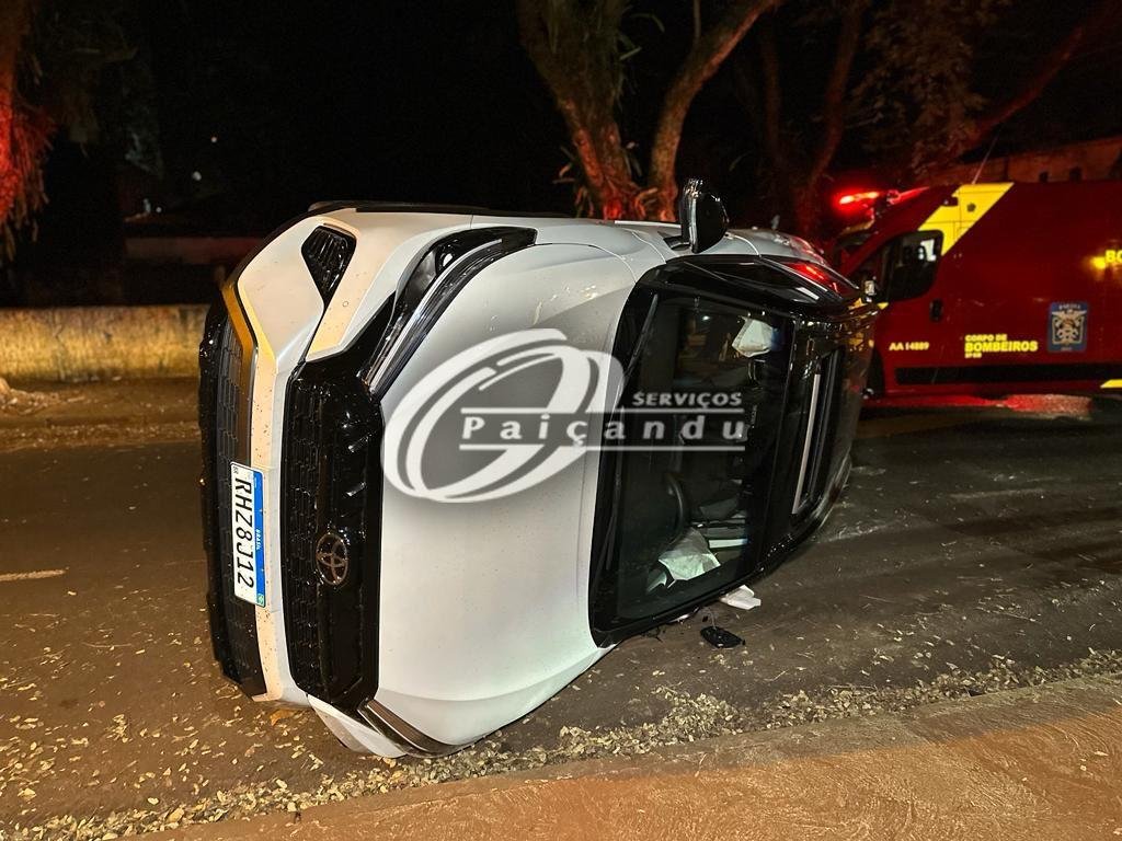Conduzindo um Veículo Chevrolet Corsa, o homem invadiu a preferencial e bateu contra um carro onde estavam cinco pessoas. Com o impacto da batida o Toyota capotou.