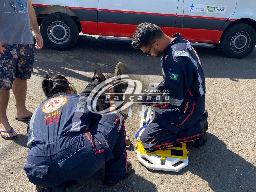 Um jovem de 24 anos, foi socorrido pela equipe do SAMU após se envolver em um acidente de trânsito no início da tarde desta quinta-feira (04) em Paiçandu.