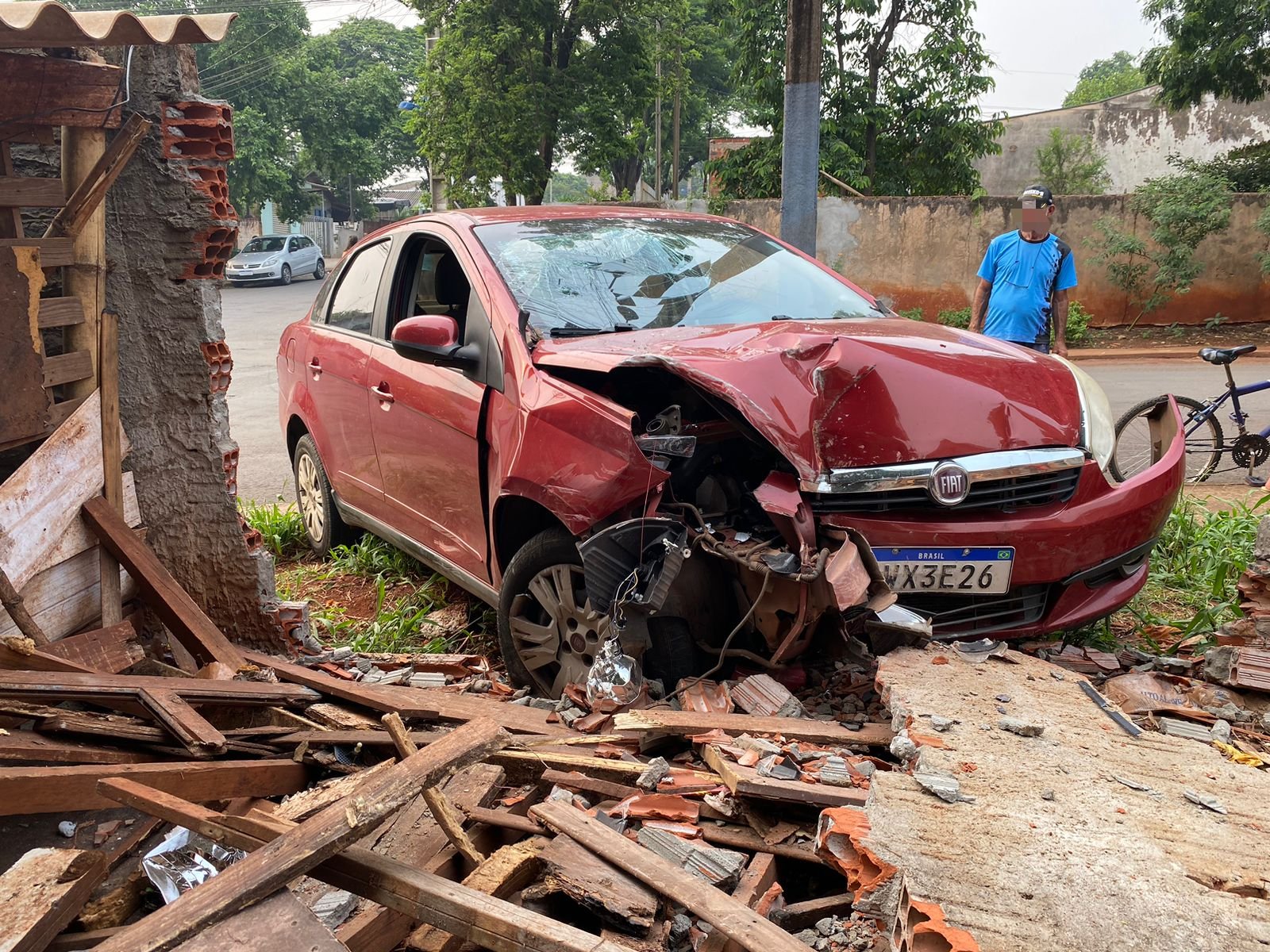 O motorista trafegava pela Avenida Rio Branco, quando perdeu o controle da direção. Por sorte o carro não atingiu crianças que brincavam no quintal do imóvel.