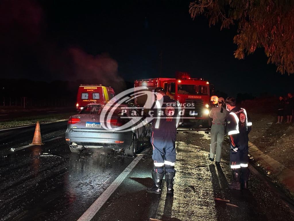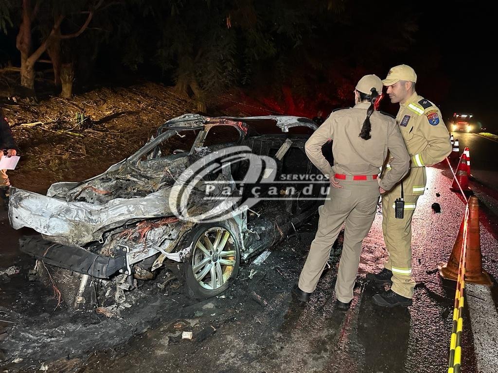 Patrulheiros da Polícia Rodoviária Estadual (PRE), estiveram no local do ocorrido. Após o trabalho da perícia, o corpo do condutor foi encaminhado para o Instituto Médico Legal de Maringá. Algumas testemunhas disseram que o motorista tentou sair do carro em chamas. Mas ele estava preso pelas pernas e lamentavelmente em poucos minutos o fogo se propagou pelo automóvel, provocando sua morte no local. Não foi possível identificar a vítima.