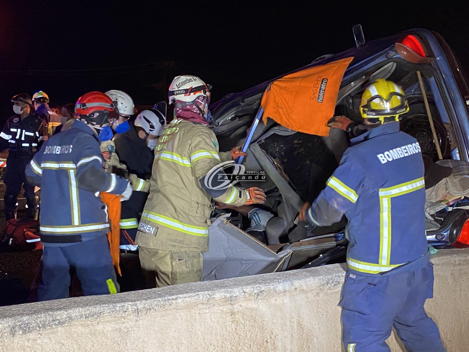Após alguns minutos Cristiano Pereira da Silva, de 32 anos, foi resgatado e encaminhado com ferimentos moderados a Santa Casa de Maringá. No automóvel também estava um cachorro que foi resgatado pelos bombeiros.