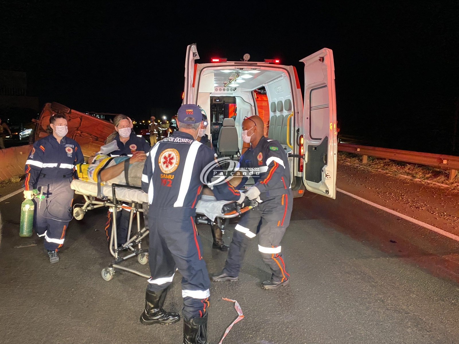 Do outra lado da pista, aconteceu outro acidente. Uma motorista diminuiu a velocidade e a cabou acontecendo uma colisão traseira. Os ocupantes dos dois veículos foram atendidos pelos socorristas na ambulância e não precisaram serem encaminhados.