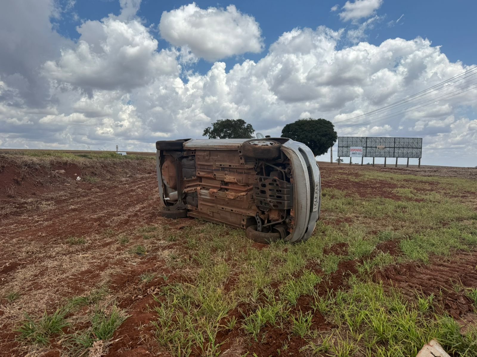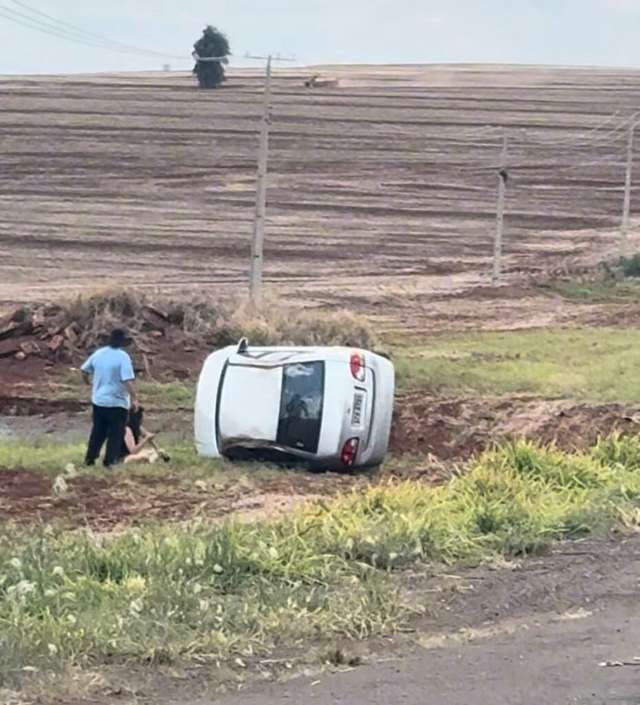 Com isso, o automóvel acabou capotando e parou às margens da rodovia.
