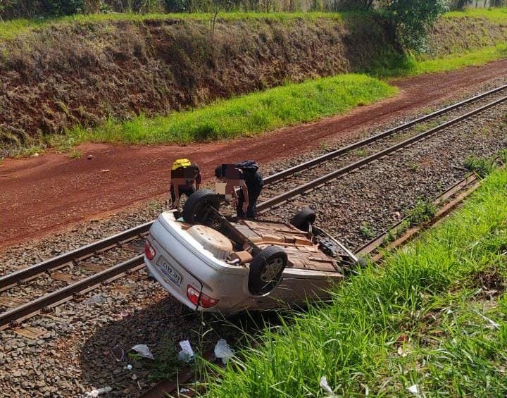 Um servidor público que estava em um carro ficou ferido após perder o controle da direção e cair em um barranco da linha férrea próxima ao Instituto Médico Legal de Maringá.