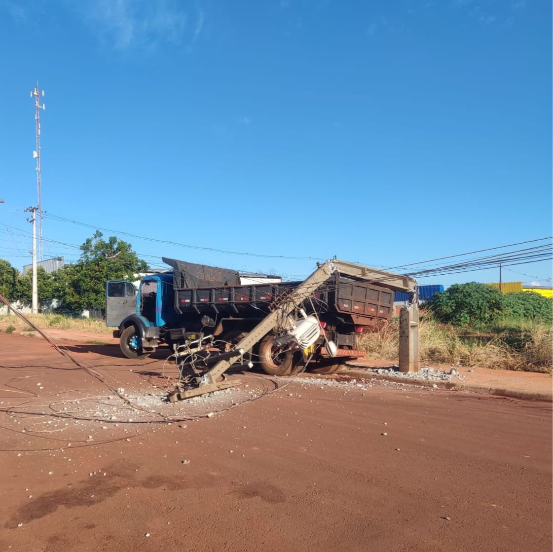 Com o impacto, fios de alta tensão foram puxados e atingiram outro poste, que também caiu. A ocorrência causou a interrupção no fornecimento de energia elétrica, atingindo o Jardim Bela Vista 2 e outros bairros do município.
