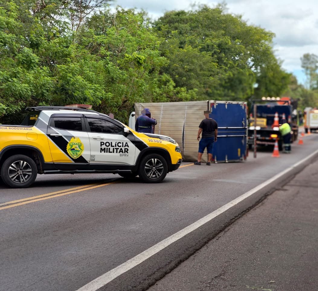 De acordo com as informações, o condutor de um caminhão Iveco/Daily seguia no sentido Umuarama a Cruzeiro do Oeste, quando perdeu o controle da direção por motivos ainda desconhecidos e o veículo acabou tombando sobre a pista.