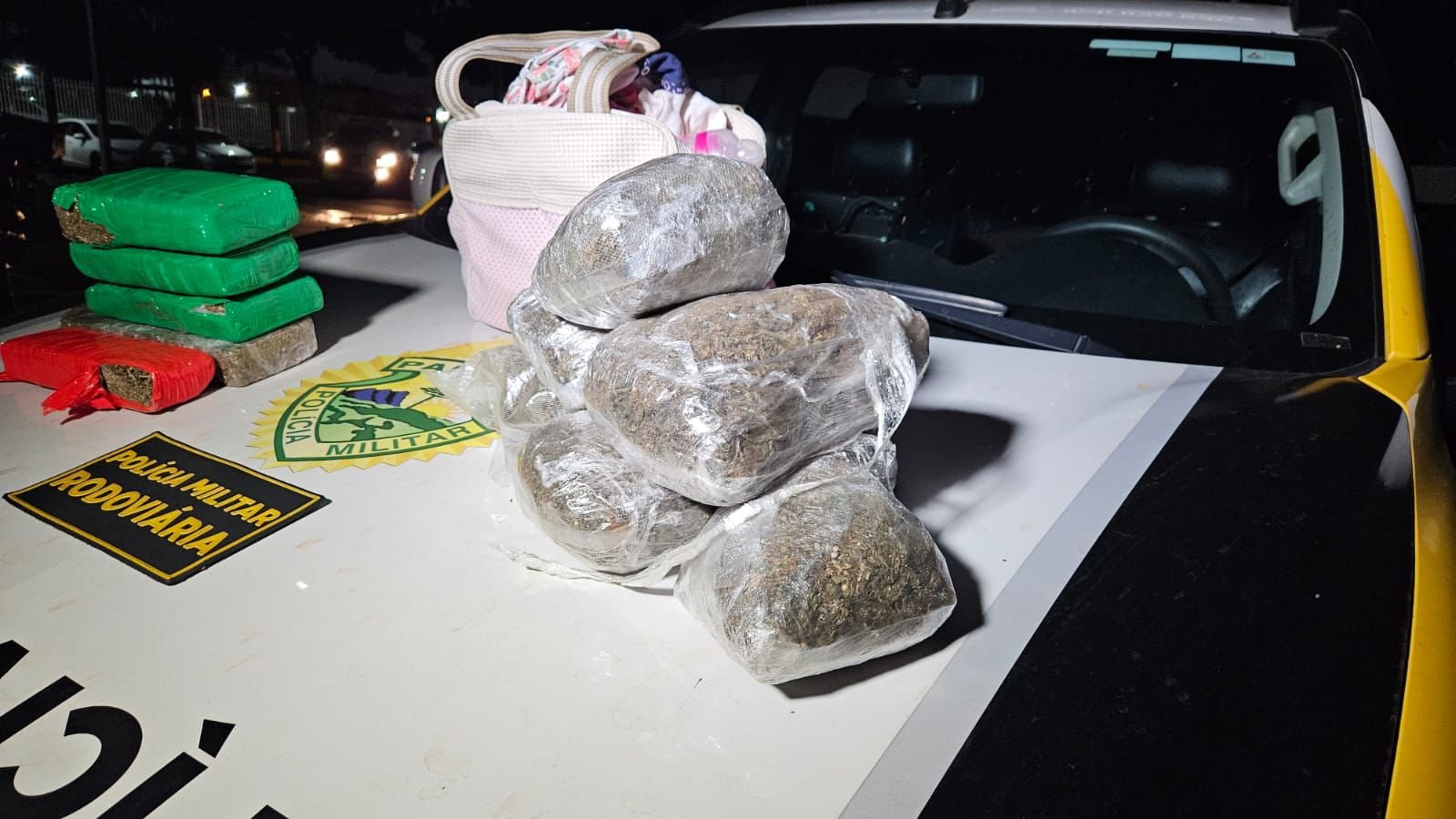 Mulher transportando drogas na bolsa de filha de 3 meses é presa pela PRE na PR-323 em Doutor Camargo