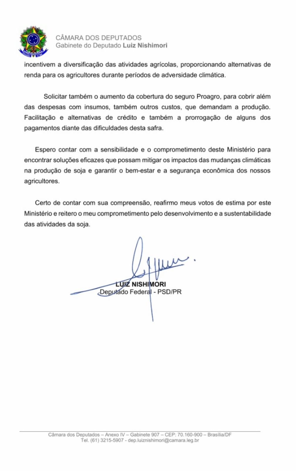 O deputado federal Luiz Nishimori demonstrou preocupação com os agricultores que enfrentaram perdas significativas na safra 2023/2024 devido às condições climáticas adversas do último ano. Em um movimento pró-ativo, Nishimori protocolou um requerimento junto ao Ministério da Agricultura solicitando apoio imediato para esses trabalhadores essenciais.