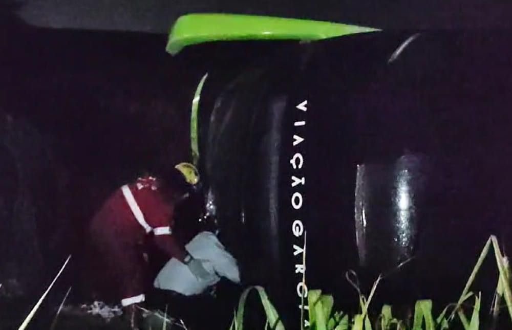 Após o acidente, o ônibus tombou na lateral da rodovia. Ainda segundo a corporação, outro ônibus da empresa Viação Garcia, foi até o local para transportar os passageiros que seguiam viagem.
