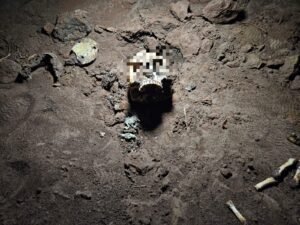 Os policiais compareceram ao local e encontraram dois ossos longos, um crânio com mandíbula completa e alguns ossos pequenos.