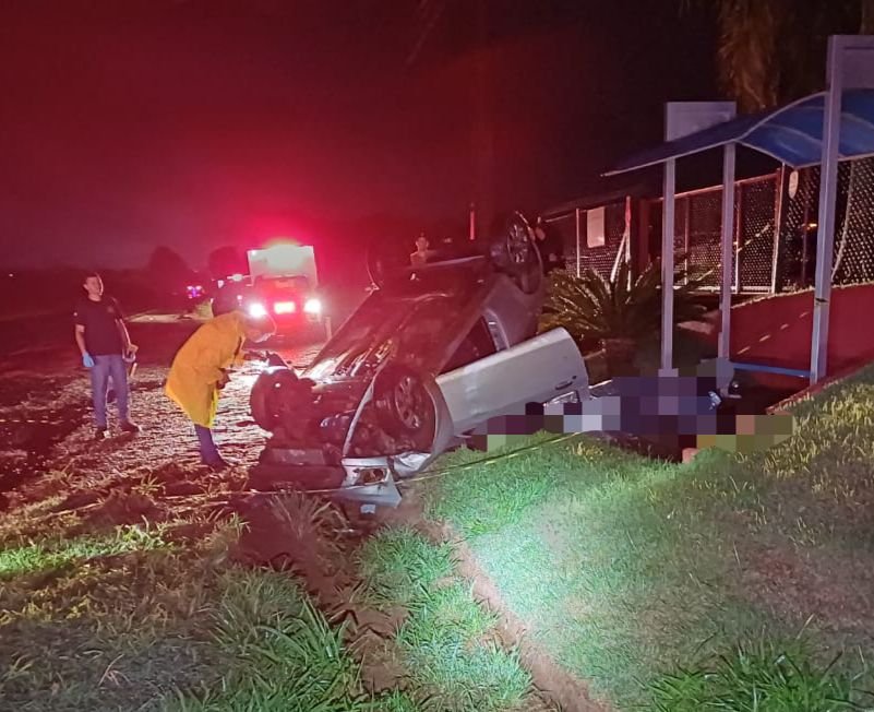 Pai morre e filho fica ferido após carro capotar ao atropelar capivara na rodovia entre Maringá e Iguatemi