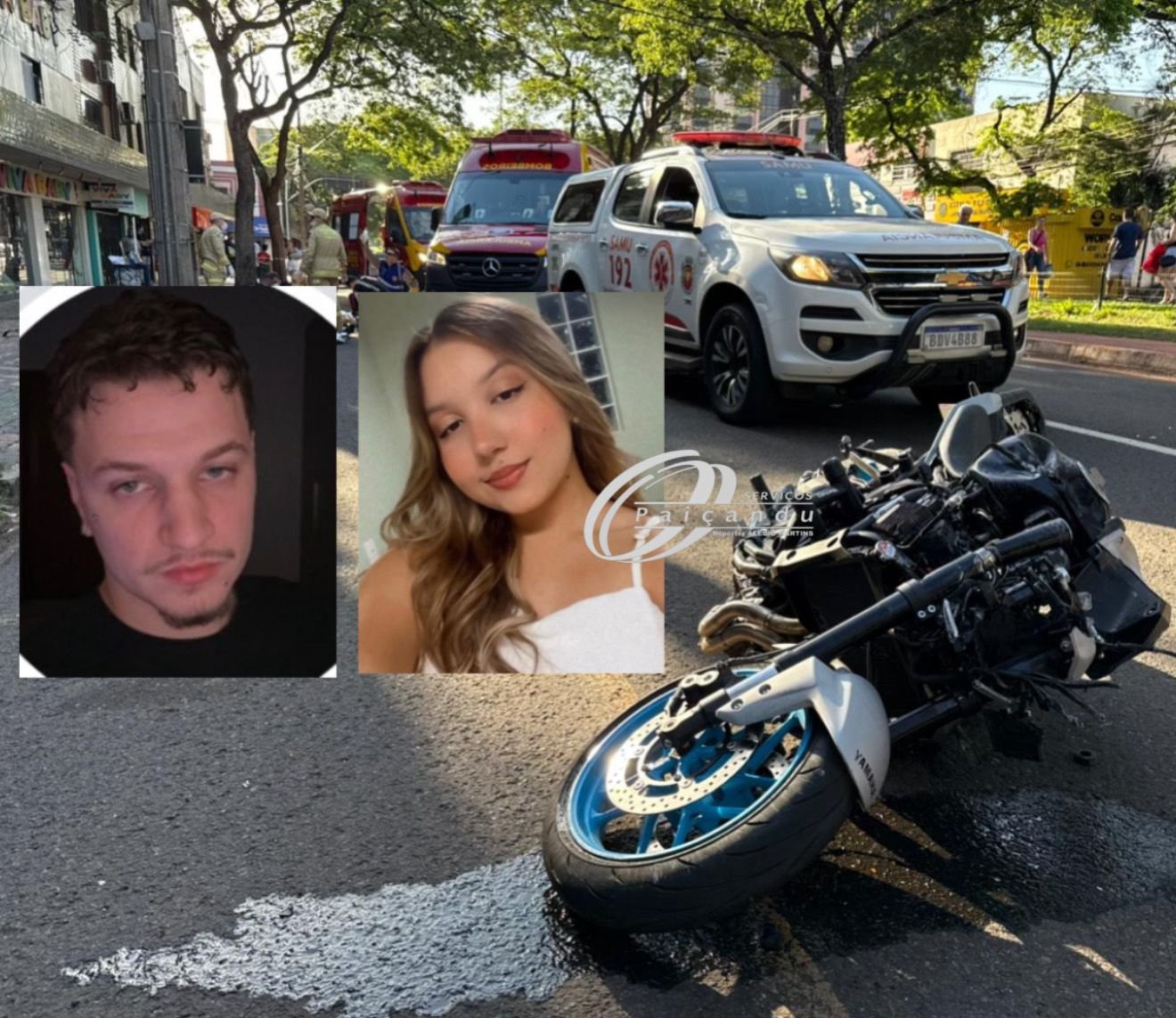 As vítimas foram identificadas como Alan Christopher Cassol Rodrigues, de 20 anos, que conduzia uma motocicleta de alta cilindrada, e Tamiris Alves, de 18 anos, que estava na garupa. Ambos seguiam sentido centro quando o motociclista perdeu o controle da direção, sofreu uma queda violenta e, na sequência, a moto colidiu contra um poste. Com o forte impacto, os dois entraram em óbito ainda no local.