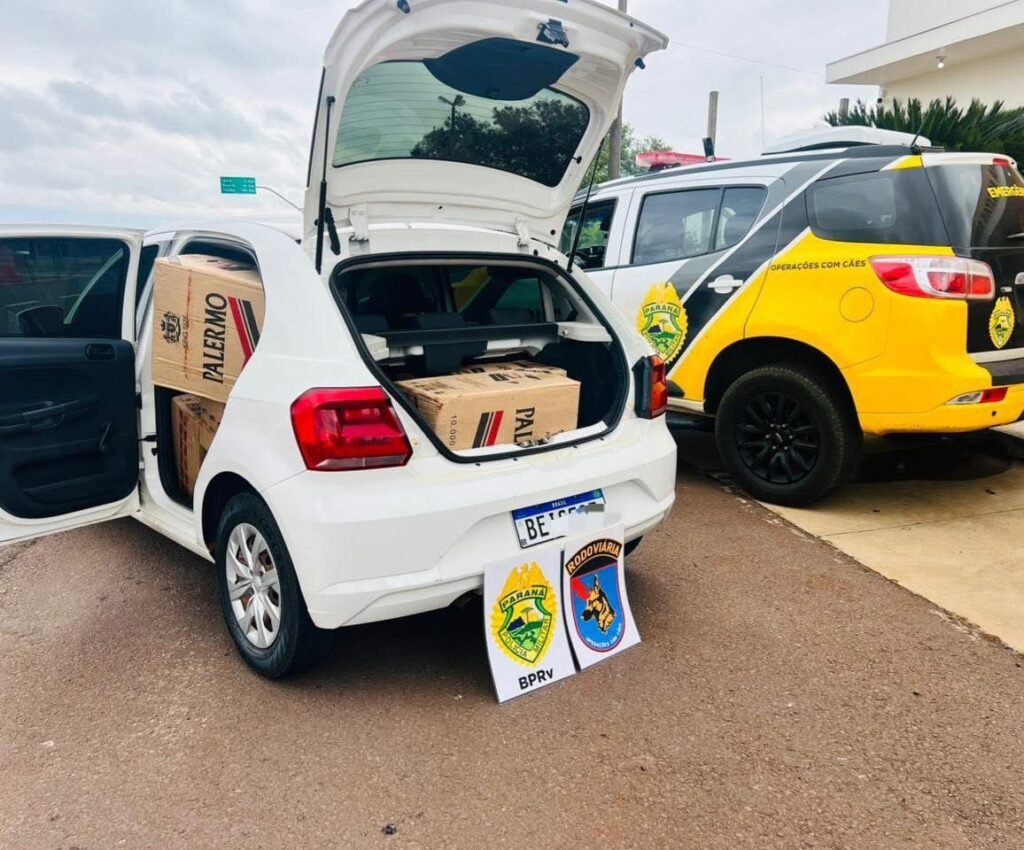 Durante a vistoria, foram encontradas cinco caixas de cigarros oriundos do Paraguai. O veículo e os cigarros foram apreendidos e encaminhados à Receita Federal de Guaíra. O condutor e um dos passageiros foram presos e levados para a Delegacia de Polícia Federal para a lavratura do flagrante.