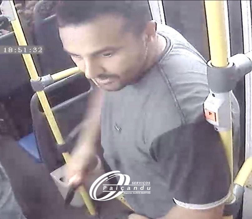 A polícia divulgou a imagem do suspeito de matar Thiago Henrique de Oliveira Araújo, de 35 anos, dentro de um ônibus do transporte coletivo, na noite de segunda-feira (27), em Maringá.