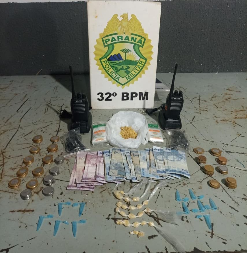 Uma ação da Polícia Militar resultou na apreensão de drogas, rádios comunicadores e dinheiro na noite de quarta-feira (04), no município de Floresta, na região de Maringá.