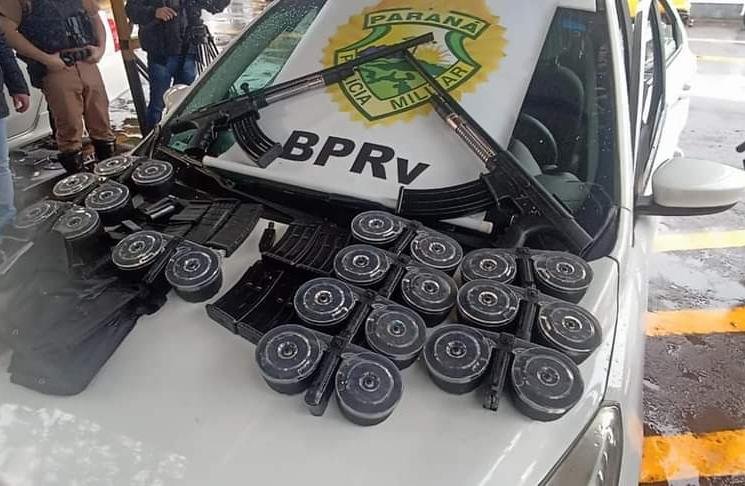 A Polícia Rodoviária Estadual apreendeu um grande arsenal com armas e carregadores de armamentos durante a manhã desta terça-feira (13). Foi durante uma abordagem a um veículo Ford Ka na rotatória da PR-317, com o Contorno Sul de Maringá.