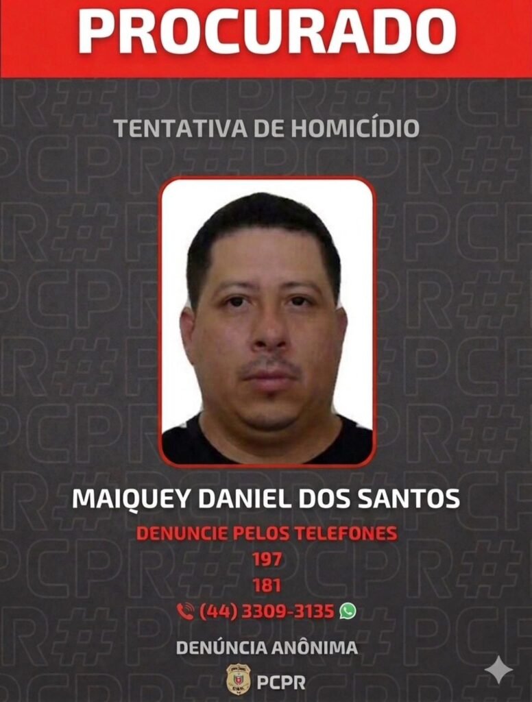 A Polícia Civil do Paraná informou que a Justiça decretou a prisão preventiva de Maikey Daniel dos Santos, de 40 anos, investigado por uma tentativa de homicídio qualificado registrada na tarde do dia 4 de março de 2026, em Maringá.