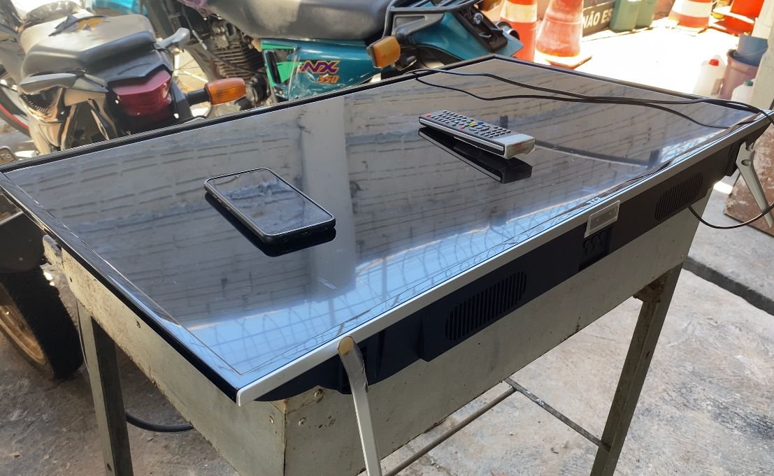 Ao verificar o imóvel em cima de uma cama estava o aparelho de TV e o celular.