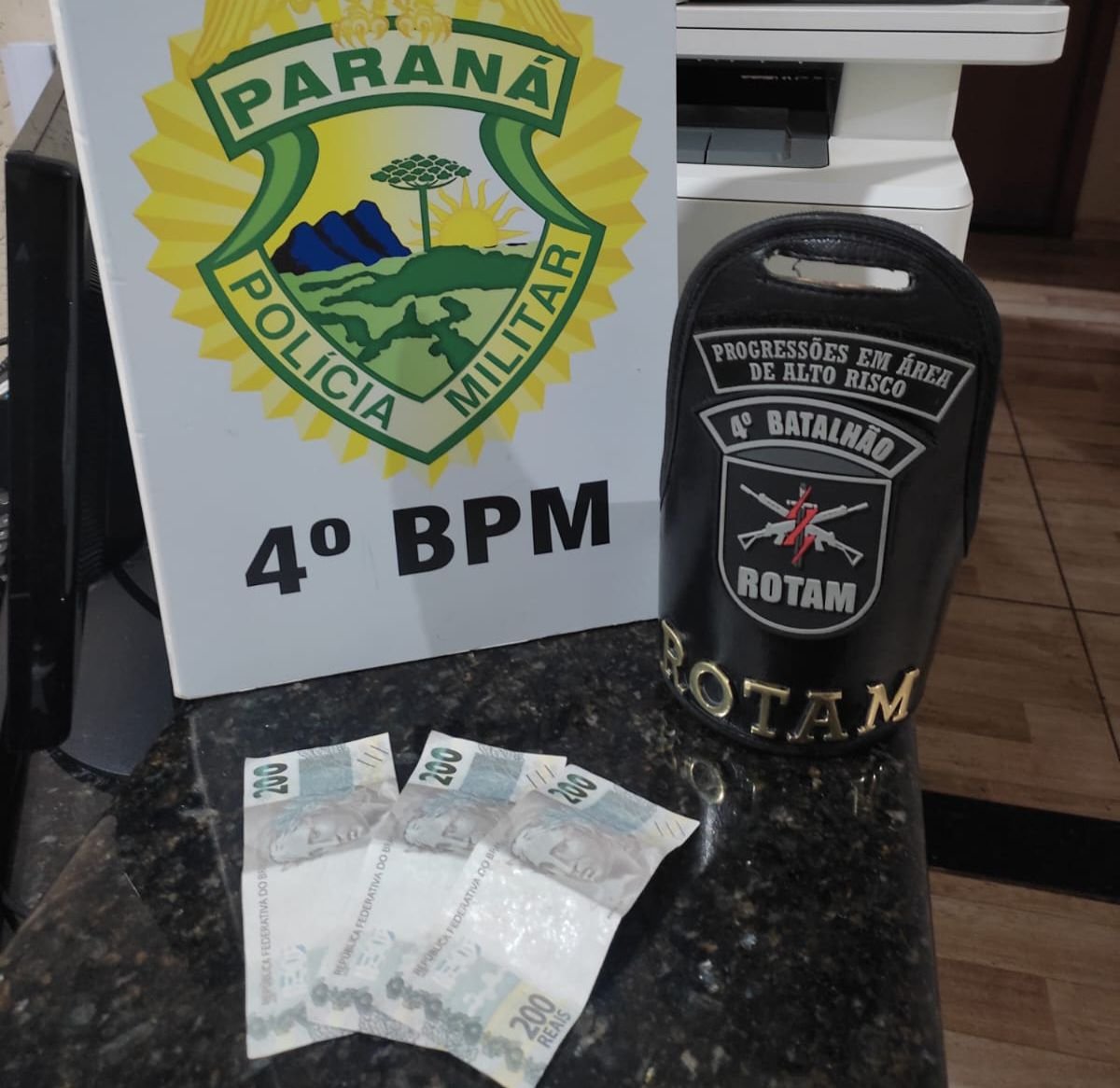 De acordo com a polícia militar, a equipe da ROTAM realizava o patrulhamento pelo bairro Bela Vista 2, quando se deparam com dois suspeitos que ao presenciar a viatura esconderam algo dentro dos bolsos. Na abordagem com um deles foi encontrado 2 notas de R$ 200 e com o outro mais uma nota falsa do mesmo valor.