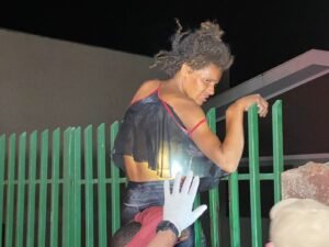 Populares que passavam pelo local na noite deste domingo (12) se depararam com a mulher gritando por socorro.