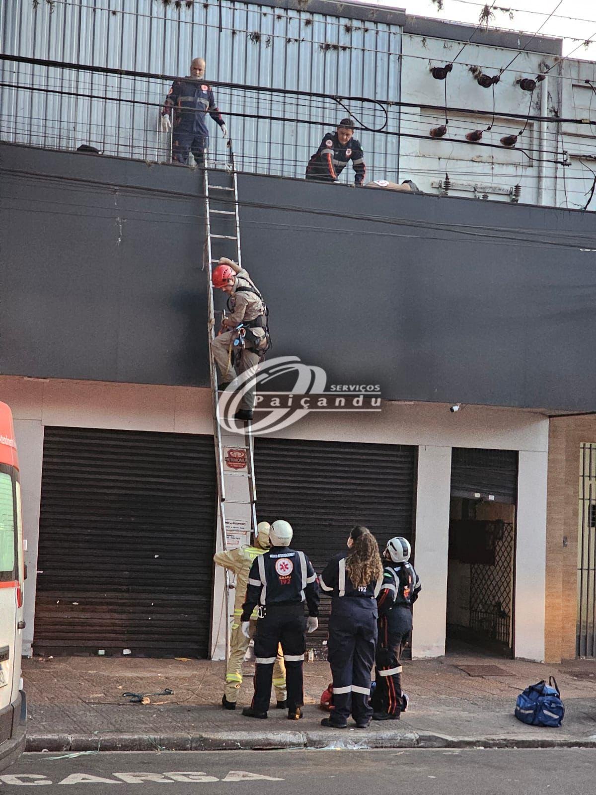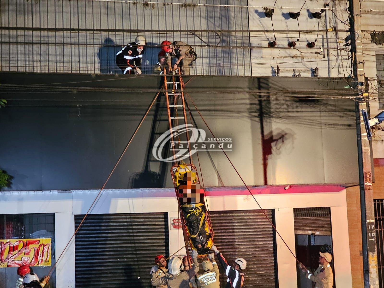 Segundo o Corpo de Bombeiros, a descarga elétrica ocorreu quando a vítima encostou na rede elétrica. Após a descarga, a vítima caiu da marquise.