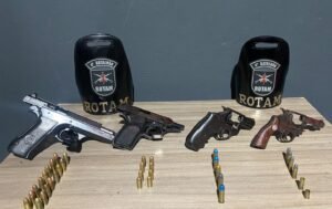 Quatro armas de fogo que estavam com os criminosos foram apreendidas.