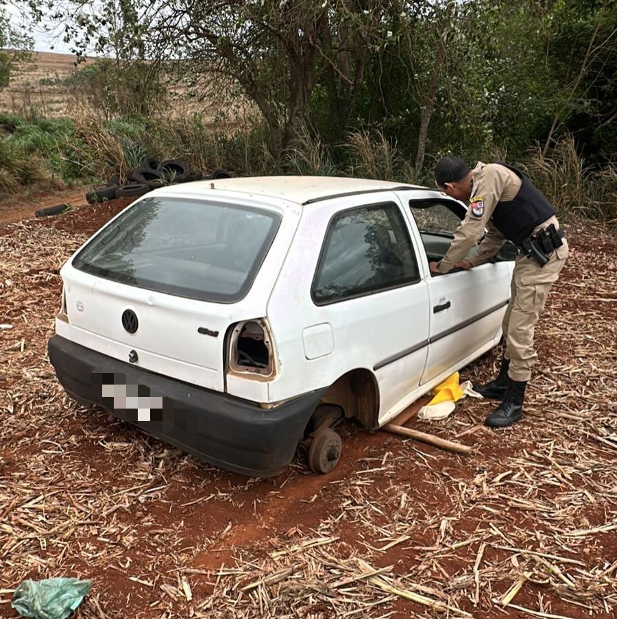 A Polícia Militar recuperou, na tarde desta quarta-feira (8), um veículo com alerta de furto na zona rural de Paiçandu.