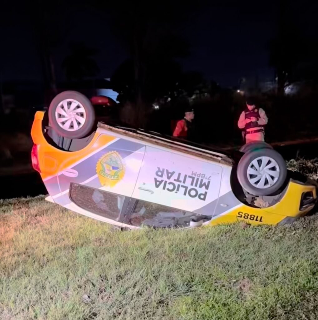 Uma viatura da Polícia Militar do 7º Batalhão capotou na noite desta segunda-feira (4) na rodovia PR-317, saída de Maringá sentido Campo Mourão, no Noroeste do Paraná. O acidente mobilizou a Polícia Rodoviária Estadual, responsável pelo registro da ocorrência.